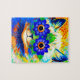 Puzzle featuring Louis Wain’s animal painting Cat Flower Eyes (1860-1939). A rainbow cat widely grins. Blue flowers cover his eyes. A wonderful gift for cat lovers and English art.