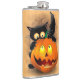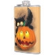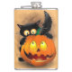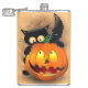 Cat Fun Halloween Character biting a Pumpkin Flask
