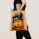 Cat Fun Halloween Character biting a Pumpkin Tote Bag