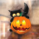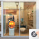Cat Fun Halloween Character biting a Pumpkin Window Cling