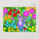 Cat Garden Colorful Flowers Butterflies Ladybugs Postcard