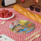 Paper Plates featuring Louis Wain’s animal painting Cats Relaxing in the Grounds at Napsbury (1860-1939). A smiling cat pours milk into teacups while watching six smaller cats drink milk, eat sweets, and play games in a garden. A wonderful gift for cat lovers and English art.