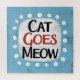 "Cat Goes Meow" is a fun text design with a white accent shape surrounded by white whimsical textured dots.
