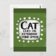 An irreverent and cute typographic animal design that says "Cat Goes On Extended Crime Spree". It features black text on a white rectangle with funky, playful white dots surrounding it, all on a green background.