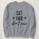 Cat Hair Don't Care sweatshirt with black lettering.