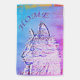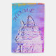Colorful cat outline on distressed colored background with "HOME" text.