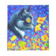 Notepad featuring Louis Wain’s animal painting Cat in Sea of Flowers (1860-1939). A black and white cat with golden eyes smells yellow flowers. In the purple background are blue flowers. A wonderful gift for cat lovers and English art.