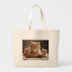 Cat in glasses reading a book to her kittens large tote bag