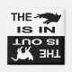 Now you will always know if someone else let the cat in or out without having to search the entire house to find out. On the top part of the magnet says "The cat is in" the bottom part says "The cat is out" In each phrase the word "cat" has been replaced by a silhouette of a cat. The bottom part is also upside down so when you turn the magnet it is legible.
