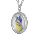 I chose gold plated so that the metal would not react with my skin oils and perspiration. But, I changed the necklace from the gold plated one to a sterling silver. My skin cells will tarnish the silver. But it will not look as bad if some portion of the gold plated necklace somehow became compromised. Zazzle did a find job turning the picture into a pendant for me. As you can see, the colors and the printing of the final product, match the preview. The picture I took is not very clear. But I am pleased with the product I received.