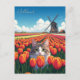 Cat in Tulip Fields Holland Netherlands Postcard