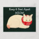 The cat wearing a bandana, parody of Cat Tama by Takahashi Shotei (1871-1945), a Japanese woodblock artist, and “Keep 6 Feet Apart MEOW," and "Thinking of you... Stay Safe. Stay Healthy.” on the back.