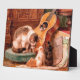 Cat Kittens and Guitar - Painterly Vintage Art Plaque