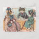 Adorable vintage illustration of two older cat women in long dresses sitting at a store counter as the clerk leans over to see what they want.