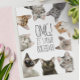 Cute birthday card with various cuddly cats looking down at you from above. Great birthday greeting for any age, because everyone loves cats. Inside is a close-up of an adorable kitten face with the verse Happy Birthday in white script.