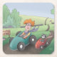 Cat Lady Road Rally Square Paper Coaster