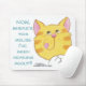 Yellow tabby cat licks his chops at the thought of a mouse. Let's not spoil it for him, as he thinks it is a real live mouse we are talking about. Funny mouse pad design for any cat lover. Original design by Christie Black of Creations from the Heart.