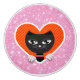 Illustration of a black cat looking through a heart shape