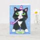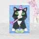 A cute tuxedo cat celebrates his first Birthday. Purr-fect for any cat lover's B-Day! This is an original design by Jamie Wogan Edwards.