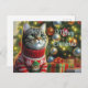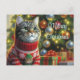 Cat Lover Cute Cat by Christmas Tree Postcard