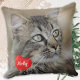 Cat Lover Gift - Pet Keepsake - Custom Photo Name Throw Pillow