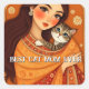 Cat lover Mom Photo orange Square Sticker