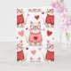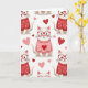 This Valentine’s Day card features a repeating pattern of white cats set against a white background, with small red and pink hearts scattered throughout. At the center, one full cat sits facing forward with a calm smile and soft rosy cheeks. It wears bright red glasses and a light pink sweater with a red heart on the front, making the love theme clear right away. Around it, other cats repeat in the pattern, some dressed in red sweaters with white polka dots and the same red glasses, all looking cozy and friendly. With no text on the front, the cats and hearts share the message, making it a sweet choice for a friend or someone special.