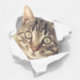 A cute cat face appearing through a torn piece of paper. Fun as a sticker for any large item.