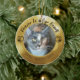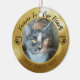Create a loving, pet memorial photo remembrance tribute keepsake ornament for a beloved cat or kitten with your custom text accented with heart and cat paw print images in your choice of colors against a gold bokeh background. The sample shows FOREVER IN OUR HEARTS in a modern handwritten script and name and years. Make for yourself or as a sympathy gift for a friend or family member grieving the loss of their best four-legged friend. ASSISTANCE: For help with design modification or personalization, color change, resizing or transferring the design to another product, contact the designer BEFORE ORDERING via the Zazzle Chat MESSAGE tab below or email makeitaboutyoustore@gmail.com.