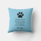 This beautiful cat memorial throw pillow is the perfect gift for someone who has just lost their kitty or a lovely gift for yourself. The front features a photo of your feline edged in black with a blue border. On the reverse side, is a pawprint with a lovely memorial verse. You can customize the name of your cat and the cat's years. This pillow makes a beautiful keepsake for years to come. Verse and design copyright peachesthetuxedocat