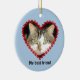 A special ornament in pale blue for you to customize with the name and photo of your wonderful cat - or any other pet. Celebrate them while they are alive; remember them after they pass on. On the front, the photo of your pet is set inside a heart-shaped frame made from red paw prints. Underneath, the text is "My best friend", or you can edit this, enter a name instead for example. On the back, the text (also editable) is "Cats leave paw prints on our hearts". There is an additional paw print and hearts for decoration.