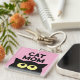 Cat Mom keychain gift for cat lovers and pet owners. Cute kitty and humorous quote. Fun gift idea for animal lover, cat owner, cat person, crazy cat lady, pet lover etc. Pink or custom background color. Funny black cat cartoon with big yellow eyes. Square and round options.