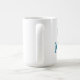 White mug with teal lettering and a red heart at the end!