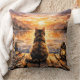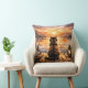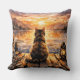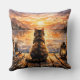 Cat on Dock at Sunset Throw Pillow