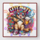 A cheerful cat wears sunglasses, holds a beer, and leans against a skateboard, embracing a lively party vibe with colorful decorations around.