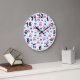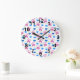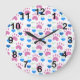 Cat Paw Hearts Meow Pink Blue Pattern Large Clock