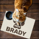 Get a personalized food mat for your precious kitty with this neutral colored mat featuring a cute cat paw with the word meow inside.
