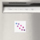 A trail of colorful cat paws done in a pink, blue and purple gradient design on a magnet