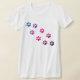 A trail of cat paws done in a pink, blue and purple gradient on a Tshirt