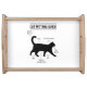 This design shows the places where you can and can't pet a cat. Lots of people know it's risky to tickle a cat's tummy but did you know cats love to be stroked under the chin? Most other cat petting guides do not tell you this. Show your love for cats by using this serving tray while at the same time educating others on how best to pet cats.