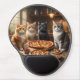 Pictured Are Four Cats Sitting Around A Table With A Pizza Ready To Eat.