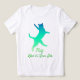 T-Shirt in a cat patterned in a gradient of turquoise and aqua, playing and leaping for joy, with the caption "play like it's your job"