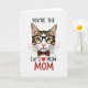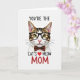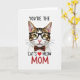 This card features a front-facing cat portrait set against a bright white background, making the gentle face the main focus. Warm tabby stripes blend into soft white fur, and the careful detailing makes it feel like you could almost touch the coat. Dark-rimmed glasses add a studious look, while a brown bow tie with small dotted spots gives the character a dressed-up, date-night charm ❤️. The cat’s large yellow-green eyes meet yours directly, creating a sweet, friendly connection, and fine whiskers fan out from its muzzle. Text sits above and below the portrait, with most words in black and a few emphasized in red for contrast. A small red heart icon appears near the message, adding a simple romantic accent 🌼. Even lighting keeps the bow tie pattern crisp and the fur shading smooth against the plain white space.