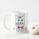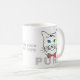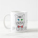 Purr text and a drawing of a cute cat face with one eye blue and the other green and a bow-tie in the American colors. One of a kind funny customizable coffee mug. You can change the image and you can change or delete the template text in the middle.