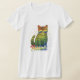 I love wearing a reprint of my colored pencil drawing of Annie the cat looking over the hillside. My illustration is based on a picture I took of Annie the manx cat. The printing turned out lovely, and the shirt is soft and thick. The American Apparel shirt run on the smaller size, so I always order a large or extra large.
