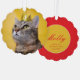 Yellow and red card ready for your photo of the regal cat who reigns over the home of your own or your friend. Send as Christmas card and let them hang it on the tree. Replace cat picture with the royal cat in question.