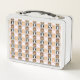 This is a standard metal lunchbox that appears to work just fine. We designed this box ourselves with an uploaded photo and custom text on the front and back. It looks absolutely beautiful except the front of the lunchbox is not centered like it shows in the photo. The print borders don't align with the inset flat part of the box where the preview photo online showed it perfectly centered in there. The back looks nice and centered though.