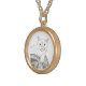 I chose gold plated so that the metal would not react with my skin oils and perspiration. But, I changed the necklace from the gold plated one to a sterling silver. My skin cells will tarnish the silver. But it will not look as bad if some portion of the gold plated necklace somehow became compromised. Zazzle did a find job turning the picture into a pendant for me. As you can see, the colors and the printing of the final product, match the preview. The picture I took is not very clear. But I am pleased with the product I received.