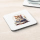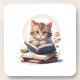 Cat reading a book beverage coaster