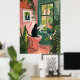 Add a little mischief to your bathroom art wall with this modern, whimsical print! Featuring a sophisticated black cat casually catching up on the news while perched on a pink toilet, this piece brings humor and charm to any space. The bold brushstrokes, lush greenery, and playful color palette create a cozy, stylish vibe that’s perfect for livening up your powder room or personal sanctuary. It's the purr-fect statement piece to spark smiles and make guests do a double take!